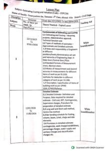 Lesson plan for civil branch-4th sem Estimate costing & valuation (Th-3)2026(S)