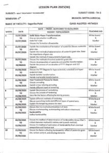Metallurgical Time Table